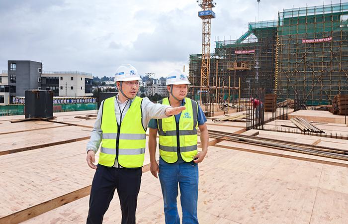 到達(dá)項(xiàng)目部后,付雋蒼深入施工現(xiàn)場實(shí)地檢查并詳細(xì)了解項(xiàng)目的資金、材料、安全質(zhì)量管理等方面的情況。