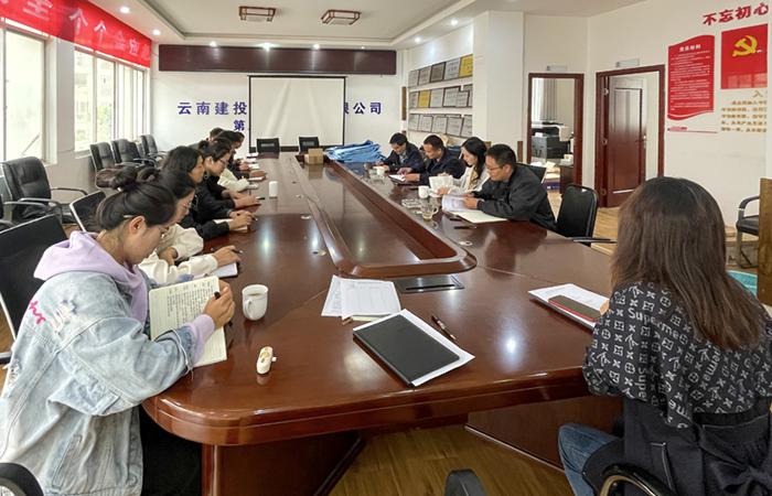 10月11日,第九直管項(xiàng)目部黨支部組織在昆班子成員、項(xiàng)目經(jīng)理、科室負(fù)責(zé)人等共計(jì)二十余人在直管部三樓會(huì)議室學(xué)習(xí)宣貫集團(tuán)第一次黨代會(huì)精神,集團(tuán)第一次黨代會(huì)代表、直管部副經(jīng)理李天星領(lǐng)學(xué)。