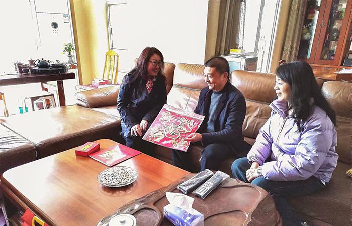 “退休后身體怎么樣?”“春節(jié)有外出游玩計劃了嗎?”馬麗娜來到勞模王磊邦家中,熱情交談,關切詢問他的身體、家庭情況和所需所求,向他介紹集團“3512”發(fā)展目標和過去一年取得的成績,對他在企業(yè)發(fā)展中所做出的貢獻表示敬意和感謝,并送上慰問信、慰問品。冷蕊代表公司領導班子向他送上美好的新春祝福,介紹了公司一年來的發(fā)展成果,希望他保重身體,一如既往地關心和支持公司工作,多為公司發(fā)展建言獻策。