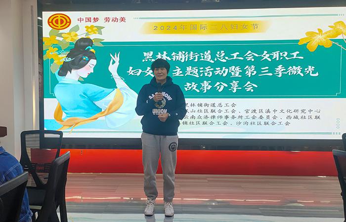 3月7日下午,公司女職工李明明受邀參加由黑林鋪街道總工會舉辦的“倡導好家風、唱響勞動美、巾幗展風采,魅力綻芳華”為主題的三八國際婦女節(jié)暨第三季微光故事分享活動。