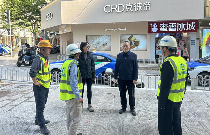 孫智文認(rèn)真聽取了項(xiàng)目施工進(jìn)展情況工作匯報(bào),并到端仕街、威遠(yuǎn)街、慶云街查看施工現(xiàn)場(chǎng),對(duì)項(xiàng)目部安全文明施工、人員組織、質(zhì)量把控等工作進(jìn)行現(xiàn)場(chǎng)指導(dǎo)。