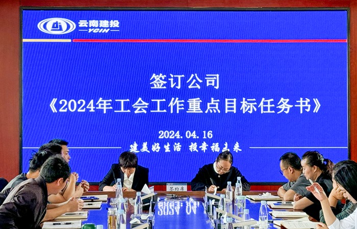 白建萍與基層工會代表簽訂公司《2024年工會工作重點目標責任書》,并宣布云南建投第五建設有限公司群眾性安全生產監(jiān)督管理專項行動正式啟動。
