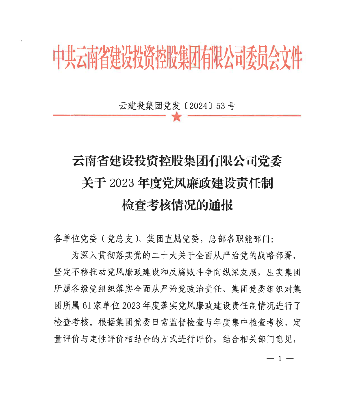 近日,集團(tuán)黨委發(fā)布《關(guān)于2023年度黨風(fēng)廉政建設(shè)責(zé)任制檢查考核情況的通報(bào)》,公司榮獲2023年度黨風(fēng)廉政建設(shè)責(zé)任制檢查考核優(yōu)秀單位。