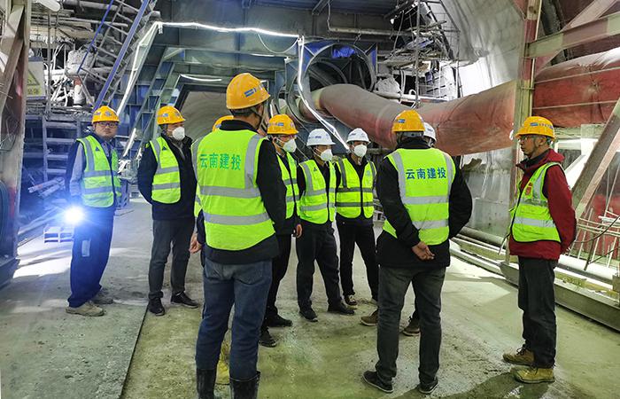 匡浩一行深入施工現(xiàn)場,詳細踏勘隧道內(nèi)各個作業(yè)面施工情況,聽取項目負責人關于施工組織、現(xiàn)場推進、安全文明施工和成本管控等方面的情況匯報。