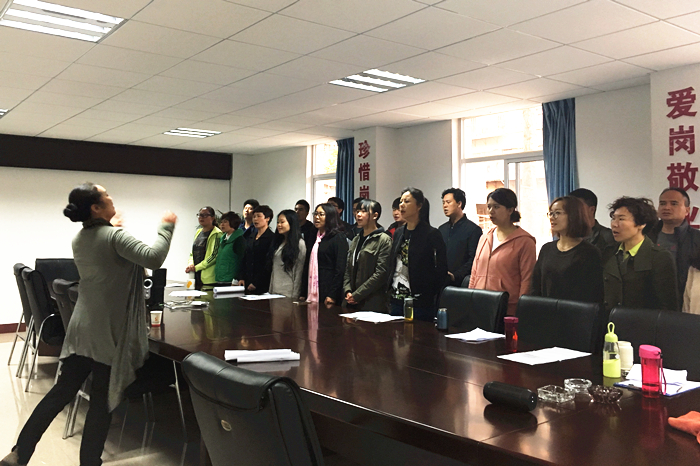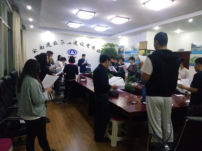 4月,根據(jù)公司工會開展“唱響發(fā)展主旋律”歌詠比賽的通知,第九直管項目部積極組織30名員工開始歌詠比賽排練,還特別邀請到云南藝術(shù)學(xué)院合唱專業(yè)的王老師進(jìn)行指導(dǎo);每天晚上六點,直九部會議室就響起歌聲,男聲高亢,女聲柔美,共譜出一曲和諧的旋律。