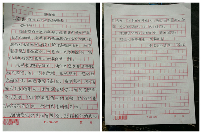 活動結(jié)束后,兩名小朋友委托集團(tuán)扶貧工作隊給公司寄來了感謝信。青年職工們表示在這樣的實踐活動中不僅學(xué)習(xí)了雷鋒精神還感受到了企業(yè)的責(zé)任與擔(dān)當(dāng)。
