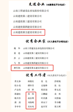 近日,昆明市建筑業(yè)協(xié)會(huì)公布2025年度評先創(chuàng)優(yōu)結(jié)果,公司榮膺2025年度昆明市建筑業(yè)“先進(jìn)企業(yè)”,實(shí)現(xiàn)連續(xù)五年榮獲該項(xiàng)榮譽(yù);公司黨委書記、董事長、迪慶公司董事唐生炳獲評昆明市建筑業(yè)“優(yōu)秀企業(yè)家”;同時(shí),蘇偉、趙志坤、劉俊峰、肖本風(fēng)4名職工獲評昆明市建筑業(yè)“優(yōu)秀工作者”。公司將以此次獲獎(jiǎng)為新的起點(diǎn),繼續(xù)秉持“建美好生活 投幸福未來 為企業(yè)謀發(fā)展 為職工謀幸?!钡钠髽I(yè)使命,堅(jiān)持“以工匠精神為引領(lǐng) 聚焦…