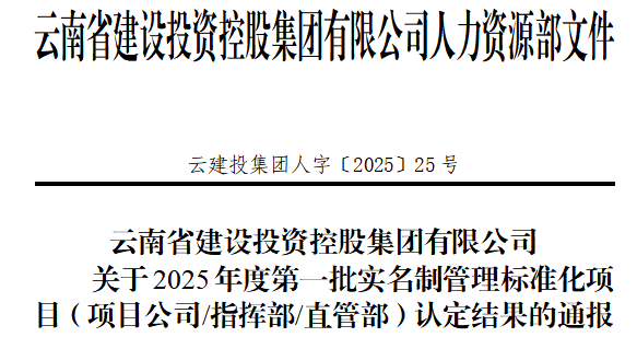 公司4個(gè)項(xiàng)目成功通過集團(tuán)2025年度第一批建筑工人實(shí)名制管理標(biāo)準(zhǔn)化項(xiàng)目認(rèn)定