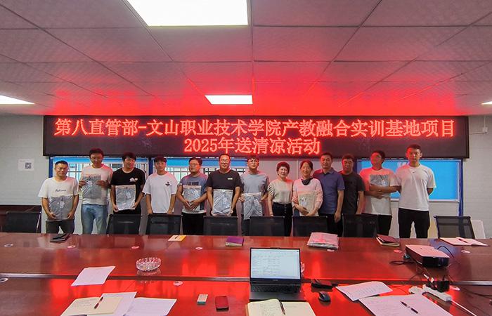 7月18日,第八直管部工會到文山職業(yè)技術(shù)學(xué)院產(chǎn)教融合實訓(xùn)基地項目開展2025年送清涼活動,為堅守一線職工發(fā)放了防曬服,送上直管部工會最真摯的關(guān)懷?;顒又行麄鹘庾x《云南省總工會關(guān)于建立健全幫扶長效機制的意見》文件內(nèi)容,向參會人員普及《防暑降溫小貼士》知識,提醒廣大職工及產(chǎn)業(yè)工人密切關(guān)注天氣變化,做好高溫天氣下生產(chǎn)、生活作業(yè)防暑降溫措施的準(zhǔn)備。活動上提出,一是直管部工會和項目部將聯(lián)動開展工作,加強對項…