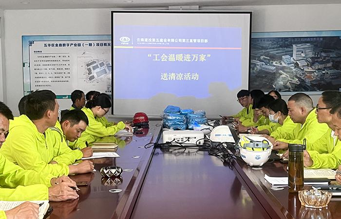 8月15-17日,第七直管項目部工會先后到云南藝術(shù)學(xué)院、輕紡職業(yè)學(xué)院等在建項目開展“工會溫暖進萬家”送清涼活動,為堅守項目一線的職工送去小風(fēng)扇、防曬袖套、清涼油、花露水等“清涼大禮包”。活動中,直管部工會主席向一線職工講解夏季防暑降溫的小常識,分享預(yù)防蚊蟲叮咬的小妙招,囑咐大家要做好防暑降溫工作,合理安排好高溫工作時間,注意自身健康,謹(jǐn)防高溫中暑。要求項目部要把健康安全放首位,注意食堂衛(wèi)生、菜品保…