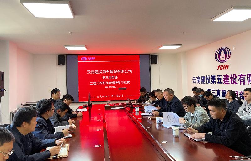 3月3日上午,第三直管部組織在昆班子成員和全體管理人員集中學(xué)習(xí)宣貫集團(tuán)和公司二屆二次職代會(huì)精神,共計(jì)27人參加。會(huì)議強(qiáng)調(diào),各項(xiàng)目、各科室要認(rèn)真貫徹落實(shí)集團(tuán)及公司二屆二次職代會(huì)精神,以職代會(huì)精神為指導(dǎo),統(tǒng)籌全年工作。會(huì)議要求,直管部全體職工要積極主動(dòng)學(xué)習(xí)集團(tuán)、公司職代會(huì)精神,把職代會(huì)精神真正學(xué)懂弄透并貫徹在日常工作中。強(qiáng)化經(jīng)營陣地,加強(qiáng)成本策劃,提高質(zhì)量意識(shí),做好項(xiàng)目精細(xì)化管理。要統(tǒng)一思想行動(dòng),堅(jiān)定…