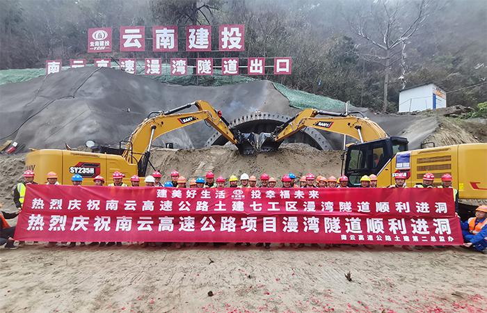 南云高速公路土建七工區(qū)漫灣隧道出口端左洞順利進(jìn)洞施工